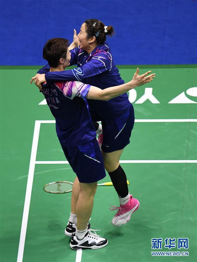 5月26日,中国队选手石宇奇(左)庆祝胜利。他在男子单打比赛中以2比1战胜日本队选手桃田贤斗。 当日,在广西南宁举行的2019年苏迪曼杯世界羽毛球混合团体锦标赛决赛中,中国队以3比0的总比分战胜日本队,第11次捧得苏迪曼杯。 新华社记者孔卉摄