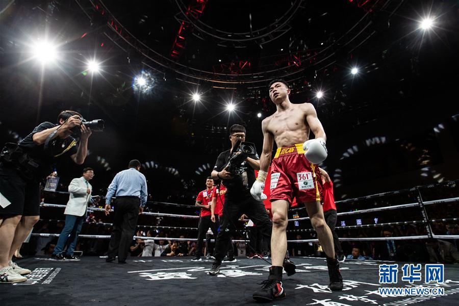 5月26日,中国选手徐灿(前)在比赛后庆祝胜利。 当日,中国羽量级世界拳王徐灿在第六回合以技术性击倒(TKO)的方式战胜日本前超雏量级世界拳王、挑战者久保隼,首次卫冕拳王金腰带。 新华社记者吴壮摄