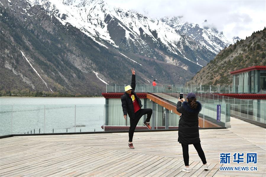 5月24日,游客在营地的观景台上拍照留念。 然乌国际自驾·房车露营营地是西藏昌都市八宿县招商引资的旅游产业扶贫项目,2018年3月正式营业。目前,营地内设观景台、餐厅、咖啡厅、酒吧、超市、房车基地、帐篷营地,拥有观景房8套、星空房78套、集装箱房22套、各类车位近200个,计划带动帮扶60户本地贫困群众增收致富。 新华社记者 李鑫 摄