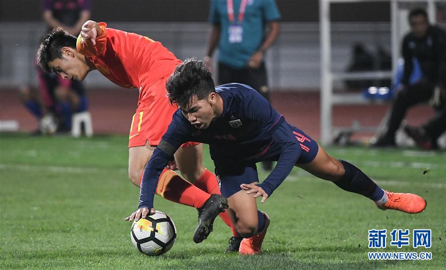 5月27日,泰国队球员普希·佩查拉(右)在比赛中与中国队球员温家龙拼抢。 当日,在四川成都举行的2019“熊猫杯”国际青年足球锦标赛中,中国U18国家队以0比2不敌泰国U18国家队。 新华社记者薛玉斌摄
