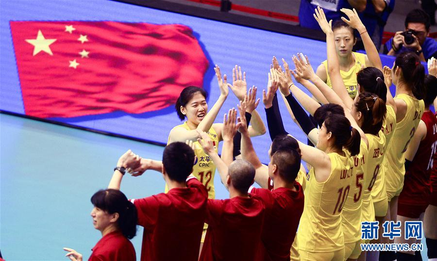 5月29日,中国队球员李盈莹(左)在出场仪式上。 当日,在澳门综艺馆举行的2019澳门国际排联世界女子排球联赛中,中国队以3比0战胜比利时队。 新华社记者卢炳辉摄