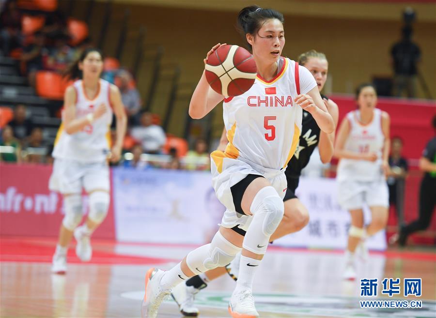 6月2日,中国队球员王思雨(前)在比赛中突破。 当日,在江苏海安举行的2019年国际女篮对抗赛中,中国队以92比85战胜加美明星队。 新华社记者季春鹏摄