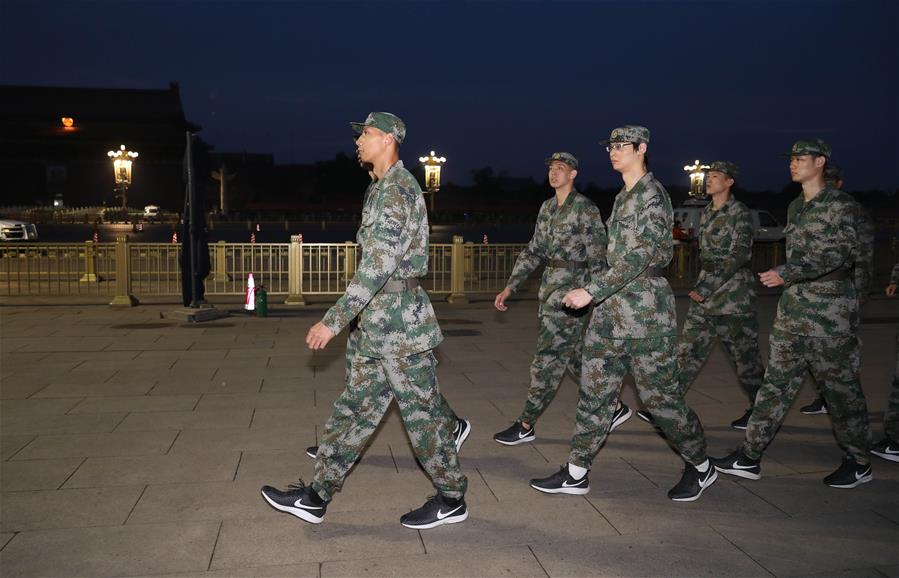 6月6日,中国男篮集训队队员在升国旗仪式前。 当日,中国男篮集训队来到北京天安门广场,观看升国旗仪式。 新华社记者孟永民摄