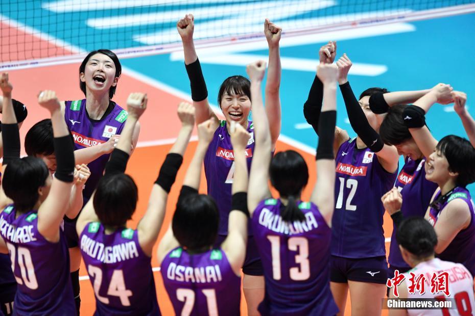 6月6日,香港排球总会主办的“FIVB世界女排联赛香港2019”于香港体育馆举行最后一天的赛事。日本队以3-0轻取荷兰。3天赛事中,日本队以1胜2负的成绩完成香港站的赛事。图为日本队庆祝胜利。中新社记者 李志华 摄