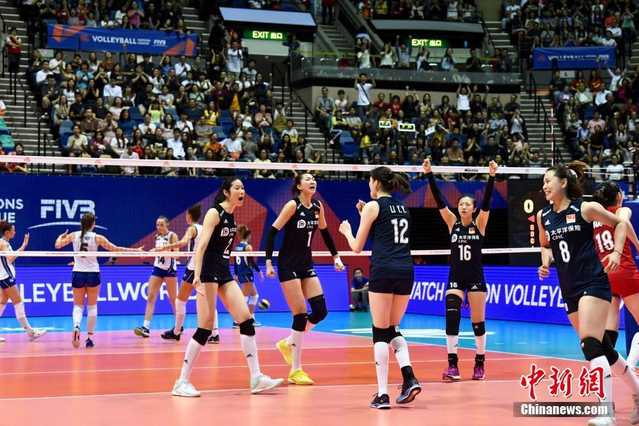 6月6日,香港排球总会主办的“FIVB世界女排联赛香港2019”于香港体育馆举行最后一天的赛事。中国队比赛开始初段打得并不顺利,在落后意大利两局的情况下,慢慢掌握比赛节奏,以3-2局数反胜意大利,艰难地取得胜利。3天赛事中,中国队以全胜的成绩完成香港站的赛事。图为中国队(蓝衣)以3-2反胜对手。中新社记者 李志华 摄