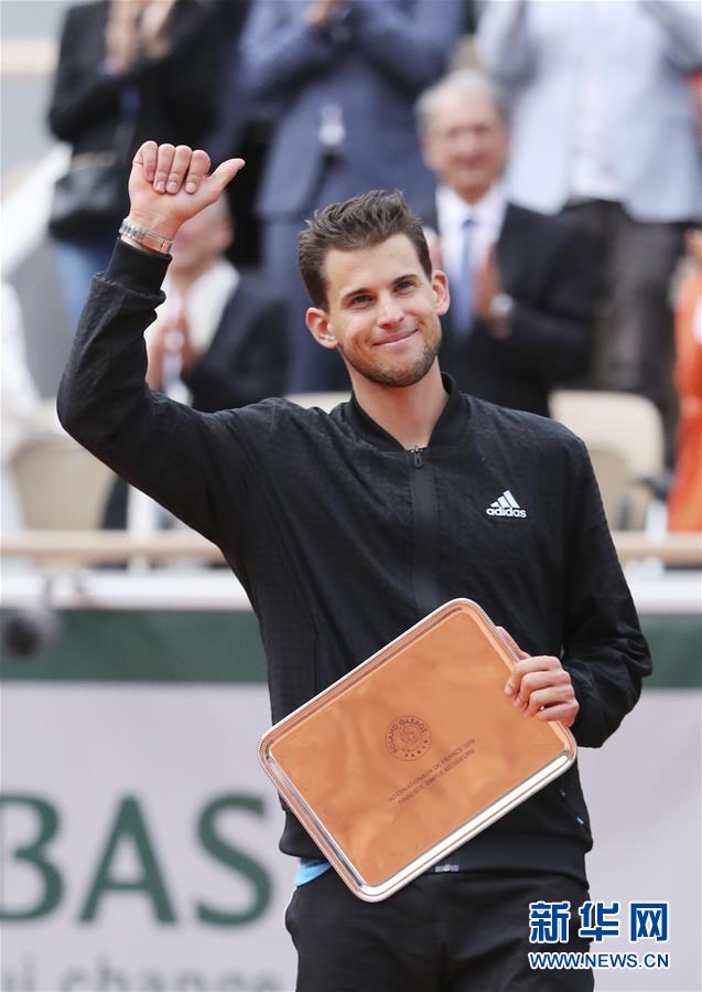 6月9日,蒂姆在颁奖仪式上。 当日,在法国巴黎罗兰·加洛斯体育场进行的2019法国网球公开赛男子单打决赛中,奥地利选手蒂姆以1比3不敌西班牙选手纳达尔,获得亚军。 新华社记者高静摄