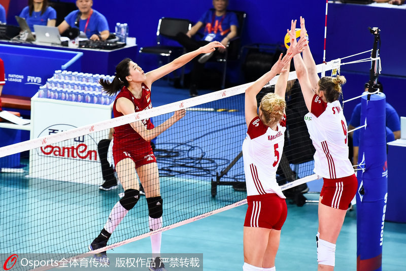 人民网北京6月11日电 北京时间6月11日晚,2019年世界女排联赛中国江门站首轮比赛继续进行,中国女排3-0(25-12、25-18、25-22)横扫波兰女排迎来开门红,同时世联赛豪取八连胜。