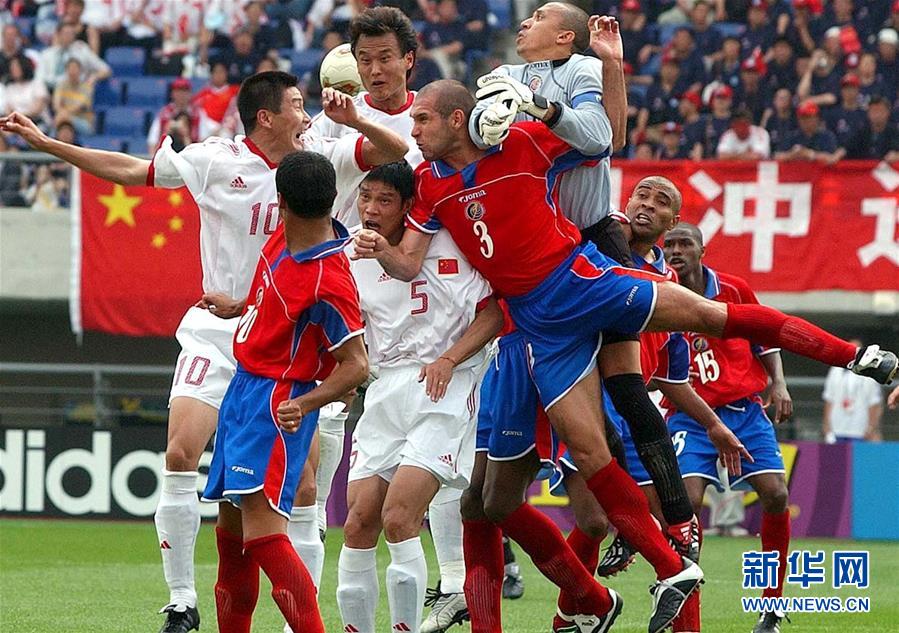 2002年6月4日,在韩国光州进行的世界杯C组第二场比赛中,中国队首战以0比2负于哥斯达黎加队。图为双方在哥斯达黎加队门前混战。 新华社记者郭大岳摄