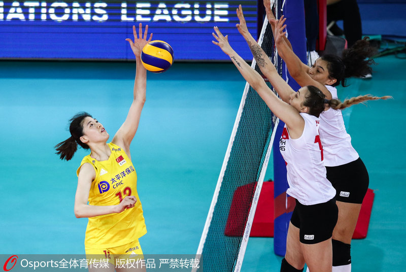 人民网北京6月12日电 北京时间6月12日晚,2019年世界女排联赛中国江门站次轮比赛及展开,中国队3-0完胜土耳其队,豪取世界联赛9连胜,三局比分为26-24、25-19、25-21。