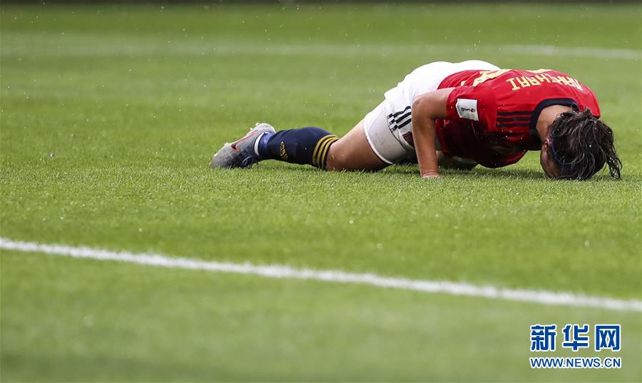 6月12日,西班牙队球员娜西卡里·加西亚在比赛中错失进球机会后懊悔。 当日,在法国瓦朗谢纳举行的2019年国际足联女足世界杯B组小组赛中,德国队以1比0战胜西班牙队。 新华社记者单宇琦摄