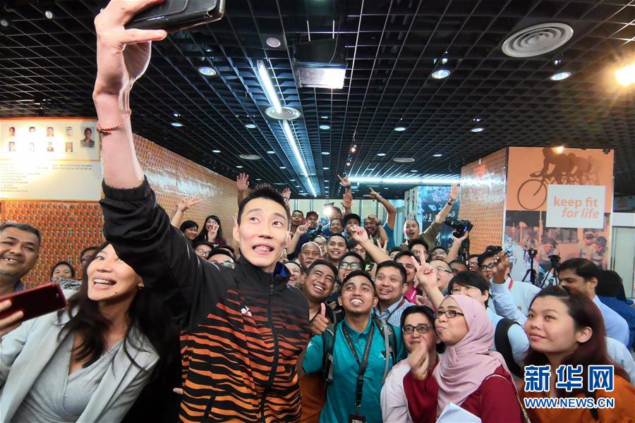 6月13日,李宗伟(前)在新闻发布会后留影。 当日,马来西亚羽毛球运动员李宗伟在马来西亚普特拉贾亚召开新闻发布会,宣布退役。 新华社发(张纹综摄)