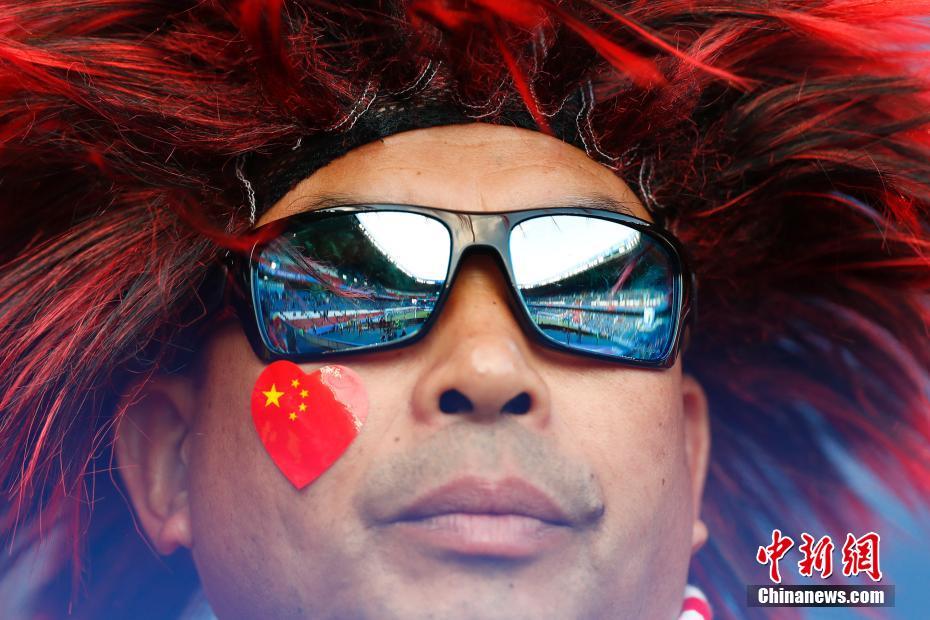 当地时间6月13日,一名中国队球迷现场观战。当日,在法国巴黎举行的2019年国际足联女足世界杯B组小组赛中,中国队以1比0战胜南非队。中新社记者 富田 摄