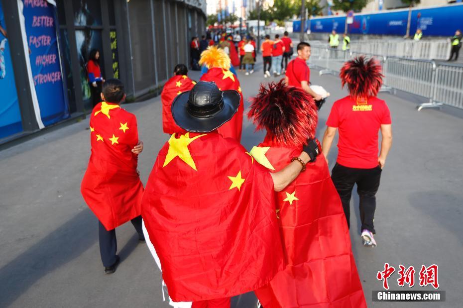 当地时间6月13日,赛场外的中国队球迷。当日,在法国巴黎举行的2019年国际足联女足世界杯B组小组赛中,中国队以1比0战胜南非队。中新社记者 富田 摄