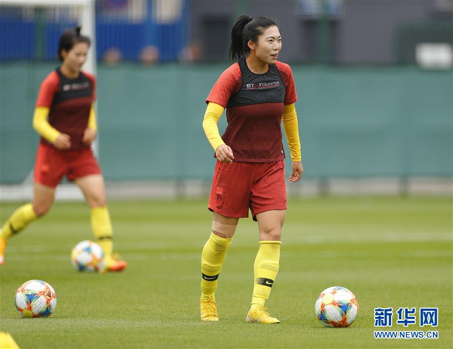 6月15日,中国队队员古雅沙(右)在训练中。 当日,中国女足在法国勒阿弗尔训练,备战2019年国际足联女足世界杯B组小组赛对阵西班牙队的比赛。 新华社记者丁旭摄