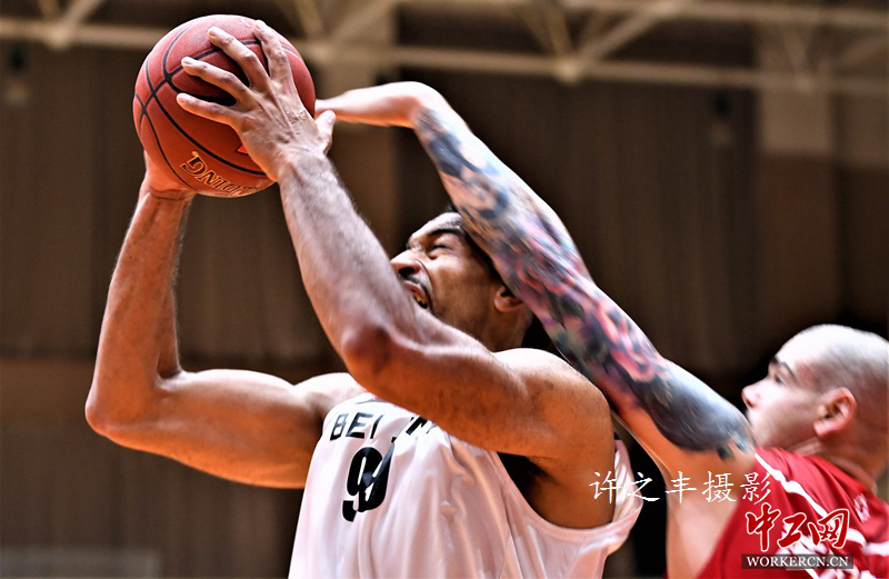 2019年6月16日晚,NBL篮球联赛第十三轮北京雄鹿队主场以87比113广西威壮队。广西豪取12连胜,稳居积分榜首位。双方比赛数据:北京雄鹿队,外援杨得到31分10篮板,霍利菲尔德拿下29分20篮板。广西队,外援茨尔伯斯得到34分9篮板,陈柯良21分,李明皓12分。图为双方的比赛。工人日报-中工网许之丰摄影报道