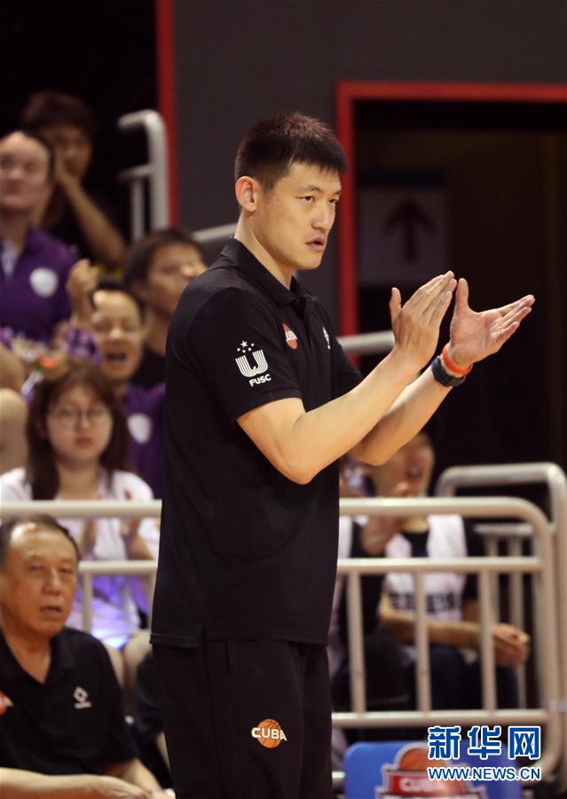 6月16日,清华大学队主教练陈磊在比赛中指挥。 当日,在第21届中国大学生篮球联赛(CUBA)男子决赛中,北京大学队以84比77战胜清华大学队,夺得冠军。 新华社记者孟永民摄