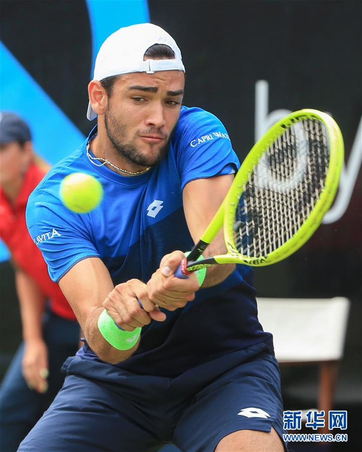 6月16日,意大利选手贝雷蒂尼在比赛中回球。 当日,在德国斯图加特举行的2019梅赛德斯杯男子网球公开赛决赛中,意大利选手贝雷蒂尼以2比0战胜加拿大选手奥热尔-阿利亚西姆,夺得冠军。 新华社发(菲利普·鲁伊兹摄)