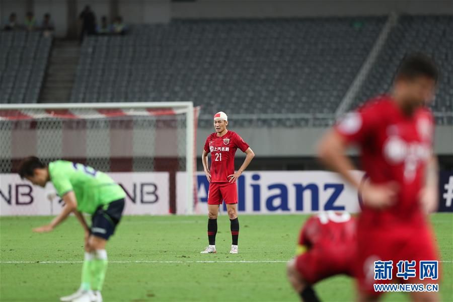 6月19日,上海上港队球员于海(中)在比赛中。 当日,在2019年亚冠联赛八分之一决赛首回合比赛中,中超上海上港队主场以1比1战平韩国全北现代队。 新华社记者丁汀摄