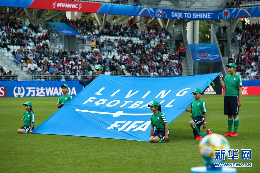 正在法国进行的女足世界杯口号为“勇敢闪耀”。闪耀世界杯赛场的不只有24支参赛球队的552名球员,每场比赛前手持国际足联会旗入场的小旗手们,同样成为赛场里的一道风景。继去年俄罗斯世界杯后,作为国际足联顶级赞助商的万达集团再次承担为女足世界杯招募小旗手的任务。通过小旗手项目,共有312名青少年站在了女足世界杯赛场上,其中有不少中国青少年的身影。 这是6月11日,在法国举行的2019年国际足联女足世界杯小组赛美国队对阵泰国队的入场仪式上,来自中国的小旗手展示国际足联旗帜。 新华社记者郑焕松摄