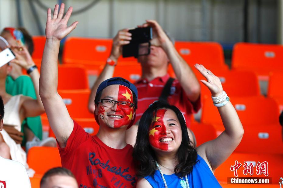 当地时间6月25日,中国队球迷到场助威。当日,在法国蒙彼利埃举行的2019年国际足联女足世界杯1/8决赛中,中国队以0比2不敌意大利队,无缘八强。中新社记者 富田 摄