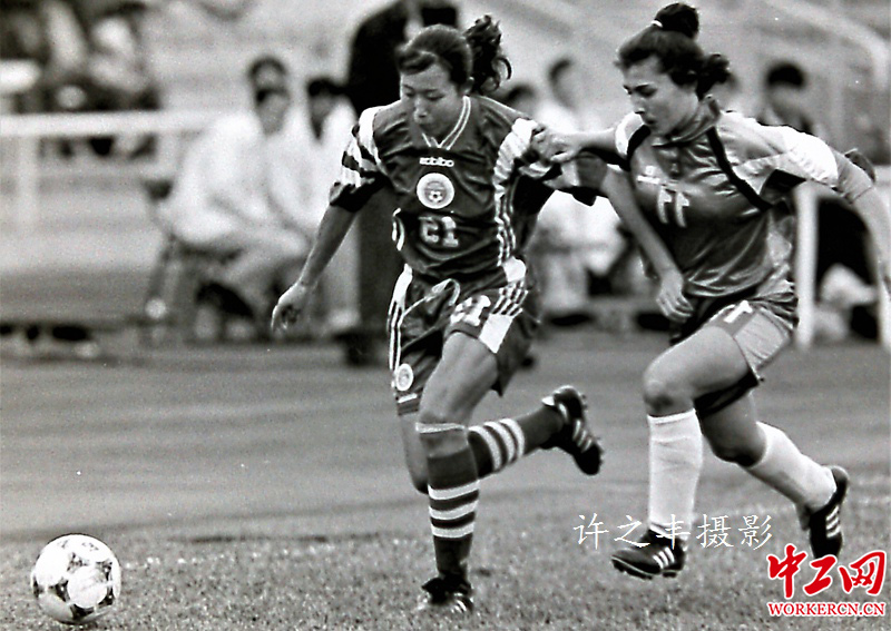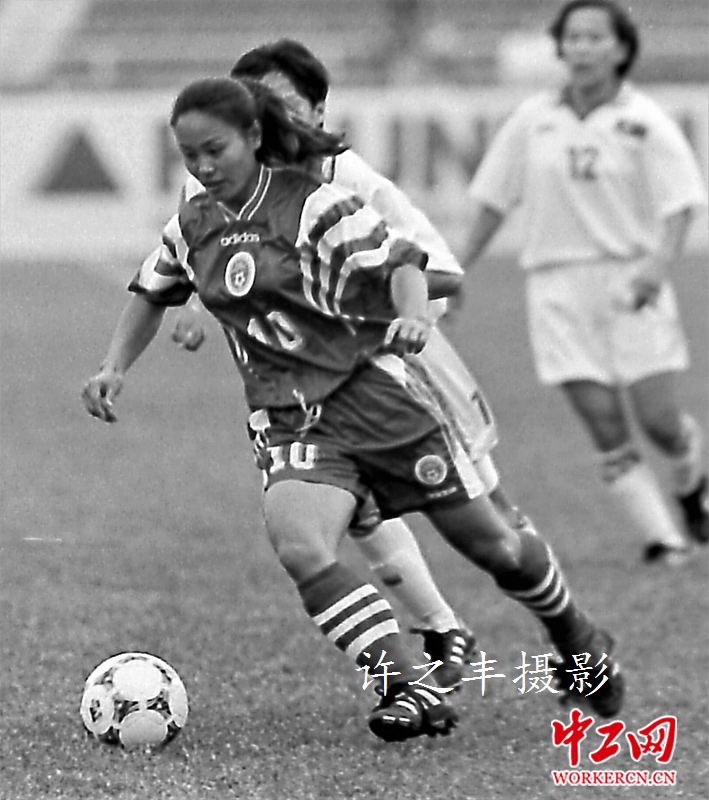 中国女足在历史上曾经创下辉煌,1996和1999年是中国女足历史中最为闪亮的年份,在美国举办的奥运会和世界杯的决赛中两次夺得亚军,征服了整个世界,铿锵玫瑰的美誉也就传开了。孙雯一越成为中国女足的头号球星,刘爱玲、金嫣、赵丽红、刘英、范运杰、高红等人时至今日依然存在中国球迷的记忆中。工人日报-中工网许之丰摄影报道