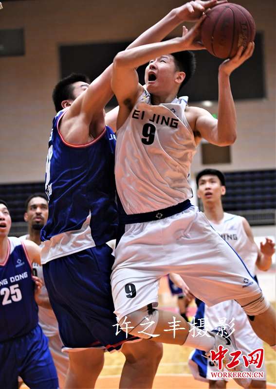 2019年6月26日晚,NBL联赛第17轮比赛,北京雄鹿队主场以111比96战胜合肥原创队。目前北京雄鹿队排名第8位,合肥队排名第9位。北京雄鹿队马奎斯33分10篮板,霍利菲尔德23分21篮板,王启鹏14分,李梓铭14分;合肥原创队塔克28分7篮板10助攻,坎贝尔21分,刘子豪19分,李炎哲10分。图为双方的比赛瞬间。工人日报-中工网许之丰摄影报道