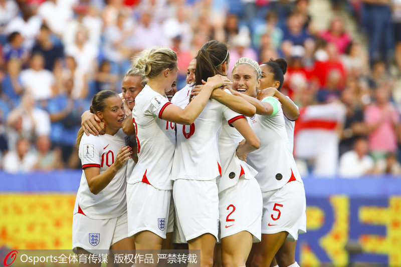 人民网北京6月28日电 北京时间今天凌晨三点,2019年国际足联女足世界杯1/4决赛第一场挪威和英格兰队之间的比赛,在勒阿弗尔的海洋球场正式开始,上半场刚开始127秒,英格兰队右后卫布隆泽突破传球,斯科特推射得分。第40分钟布隆泽做球,帕里什带球切入禁区横传,怀特推射再下一城。第56分钟布隆泽自己拼出任意球机会,米德主罚推传中路,布隆泽中路劲射打进第三球。最终英格兰队3比0大胜挪威,杀入四强。
