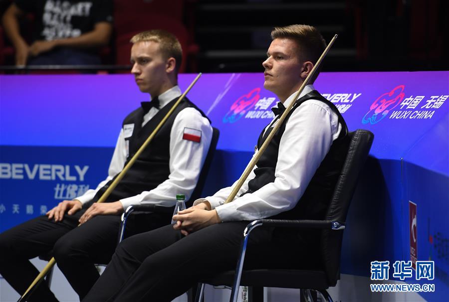 新华社照片,无锡(江苏),2019年6月27日 (体育)(9)台球——斯诺克世界杯:中国A队胜波兰队 6月27日,波兰队选手斯捷潘诺夫(右)/菲利皮亚克在比赛中。 当日,在江苏无锡举行的2019斯诺克世界杯小组赛中,中国A队选手丁俊晖/颜丙涛以5比0战胜波兰队选手斯捷潘诺夫/菲利皮亚克。 新华社记者季春鹏摄
