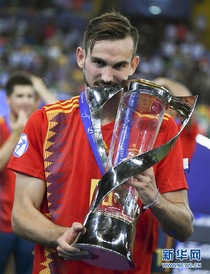 6月30日,西班牙队球员法比安·鲁伊斯手捧奖杯。 当日,在意大利乌迪内举行的欧洲U21青年足球锦标赛决赛中,西班牙队以2比1战胜德国队,获得冠军。 新华社发(阿尔贝托·林格里亚摄)