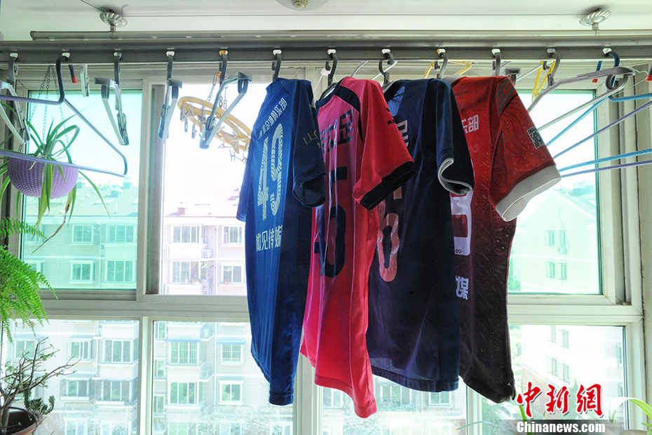 昳姐是这支名叫“水军”的女足球队里年龄最大的球员,球队里有的年轻小朋友甚至可以叫她一声阿姨。队服号码每年都会变:递增的号码是她渐长的年龄。今年的球衣是49号,而这也是她效力“水军”的第5个年头。中新网记者 李霈韵 摄