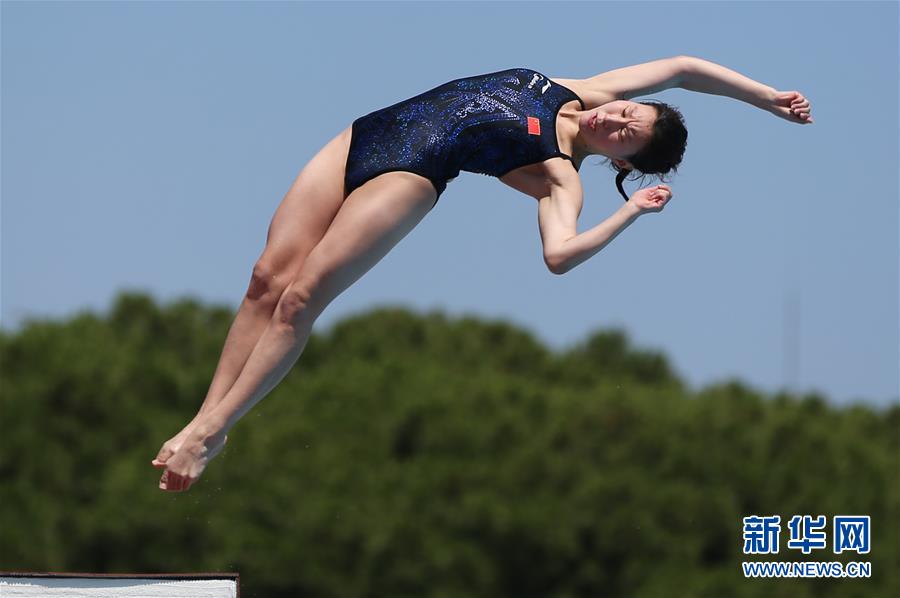7月2日,中国选手焦婧婧在跳水项目女子10米跳台预赛中。 当日,第30届世界大学生夏季运动会跳水项目在意大利那不勒斯开赛。 新华社记者郑焕松摄