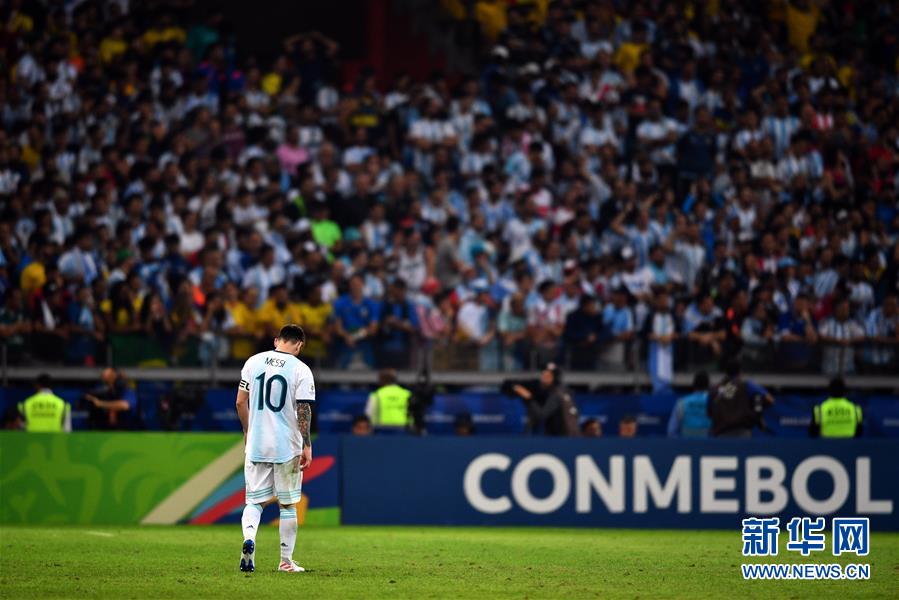 7月2日,阿根廷队球员梅西在比赛中。 当日,在巴西贝洛奥里藏特举行的美洲杯半决赛中,巴西队以2比0淘汰阿根廷队,晋级决赛。 新华社记者 辛悦卫 摄