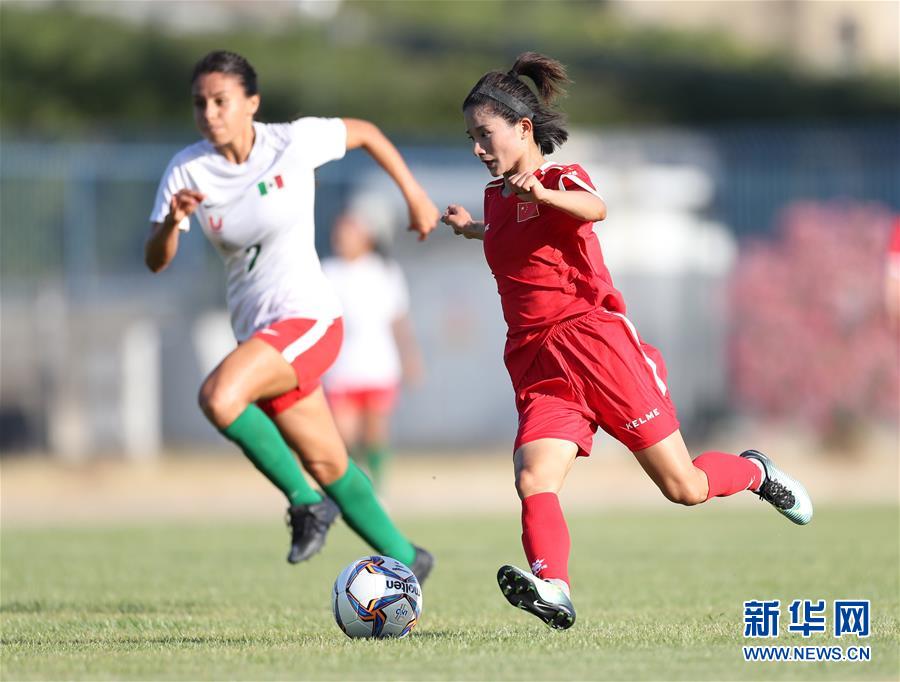 7月4日,中国队球员闫颖颖(右)在比赛中突破。 当日,在意大利那不勒斯举行的第30届世界大学生夏季运动会女子足球小组赛中,中国队以3比2战胜墨西哥队。 新华社记者孟永民摄