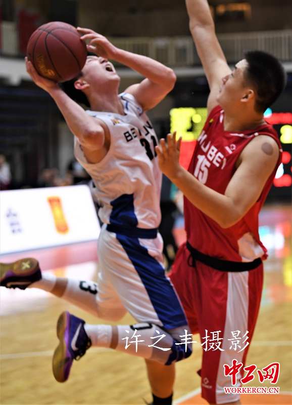 7月5日晚,2019NBL篮球联赛第21轮比赛,北京雄鹿队主场以106比95战胜武汉当代队。本轮过后北京队排名第8位,武汉队排名第10位。图为双方的比赛瞬间。工人日报-中工网许之丰摄影报道
