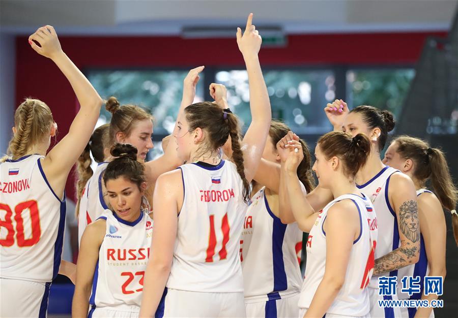 7月8日,俄罗斯队球员在比赛后庆祝胜利。 当日,在第30届世界大学生夏季运动会女子篮球五至八名排位赛中,中国队以64比73不敌俄罗斯队。 新华社记者程婷婷摄