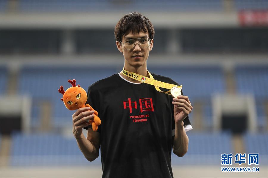 7月9日,北京队选手王宇在颁奖仪式上。 当日,在辽宁沈阳举行的2019全国田径锦标赛男子跳高决赛中,北京队选手王宇以2米28的成绩获得冠军。 新华社记者潘昱龙摄