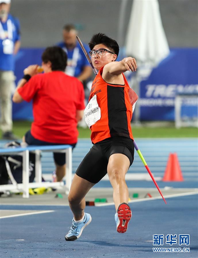 7月10日,中国选手苏玲丹在比赛中。 当日,在意大利那不勒斯举行的第30届世界大学生夏季运动会田径项目女子标枪决赛中,中国选手苏玲丹以56米89的成绩获得第五名。 新华社记者单宇琦摄