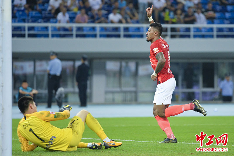 2019年7月11日,天津市,2019中超第17轮,天津泰达Vs广州恒大淘宝。保利尼奥庆祝进球。(来源:视觉中国)
