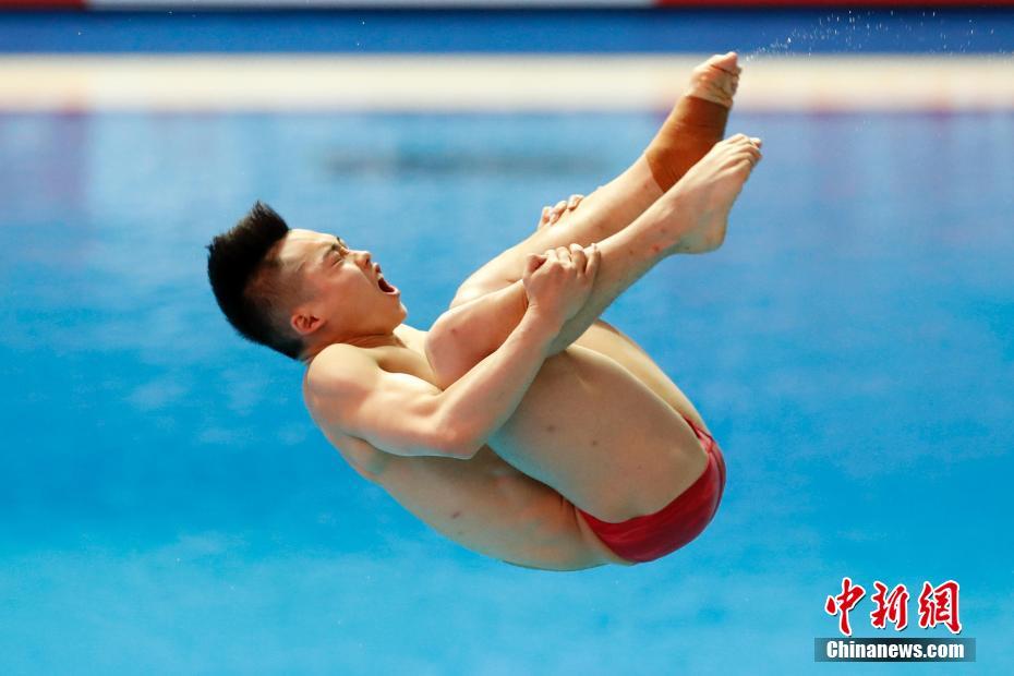 7月14日,中国选手王宗源在比赛中。当日,在韩国光州举行的世界游泳锦标赛跳水男子一米板决赛中,中国选手王宗源以440.25分的总成绩获得金牌,中国选手彭健烽以415.00分的总成绩获得铜牌。中新社记者 韩海丹 摄