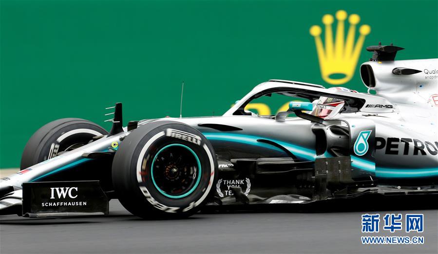 7月14日,汉密尔顿在比赛中。 当日,在银石赛道举行的2019世界一级方程式赛车锦标赛(F1)英国大奖赛正赛中,梅赛德斯车队的英国车手汉密尔顿夺得冠军。 新华社/路透