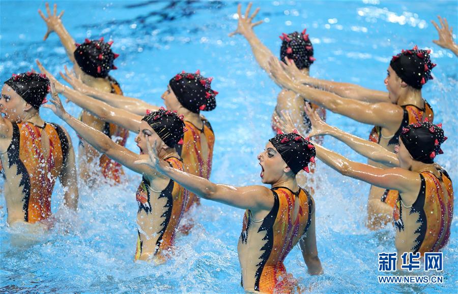 7月15日,意大利队选手在比赛中。她们以91.7333分获得亚军。 当日,韩国光州世界游泳锦标赛举行花样游泳女子集体托举决赛。 新华社记者李钢摄