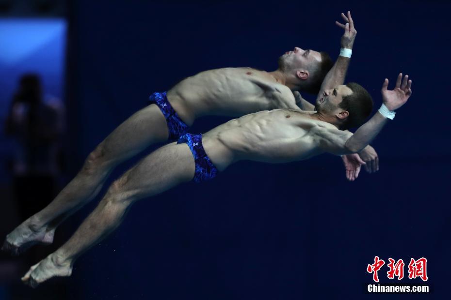 7月15日,俄罗斯选手在比赛中。当日,在韩国光州举行的2019光州游泳世锦赛男子双人十米台决赛中,俄罗斯选手以444.60分夺得第二。中新社记者 韩海丹 摄