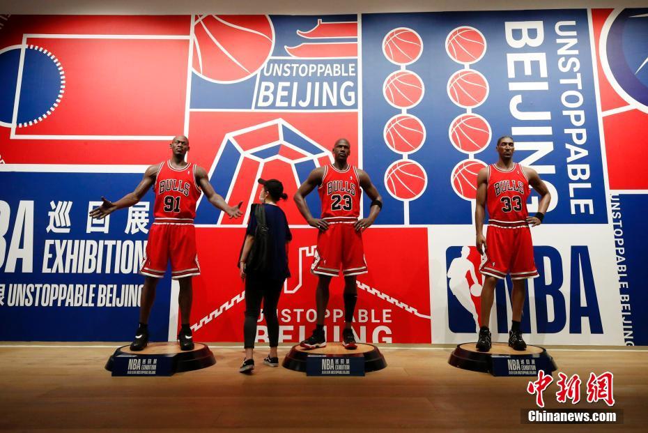 2019年7月19日,观众参观NBA冠军主题展。当日,第二届NBA(美职篮)巡回展-京彩无限在北京举行开幕典礼。据介绍,此次展览共有10大展区、500余件展品、11项多媒体互动单元等,展现了NBA激动人心的比赛和深厚悠久的历史,为前来参观的球迷观众打造立体化沉浸式的观展体验。 中新社发 李慧思 摄