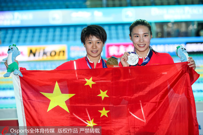 人民网北京7月20日电(杨磊) 北京时间7月19日晚,在韩国光州进行的2019年国际泳联世锦赛结束了跳水女子三米板决赛争夺,中国选手施廷懋以391.00分获得冠军,个人实现世锦赛女子三米板三连冠,中国队在该项目上赢得十连冠,世锦赛该项目总第14金。在本届世锦赛进行到现在为止的11个跳水项目里,中国队全包揽11金,达成中国跳水队在单届世锦赛上最高夺金数。中国选手王涵以372.85分获得亚军,澳大利亚选手肯尼以367.05分获得第三名。