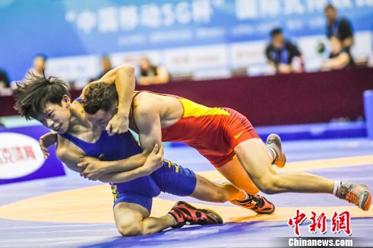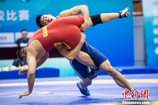 中国第二届青年运动会国际式摔跤比赛开赛。 武俊杰 摄