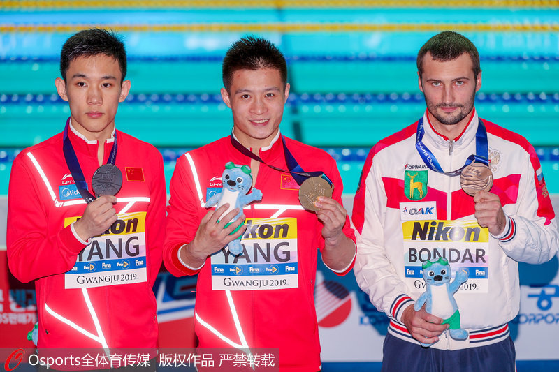 人民网北京7月21日电 北京时间昨天,2019年国际泳联游泳世锦赛结束了全部跳水比赛,最后一个项目男子10米台决赛中,中国选手杨健以6跳总分598.65夺得冠军,另一位中国选手杨昊获得第二。