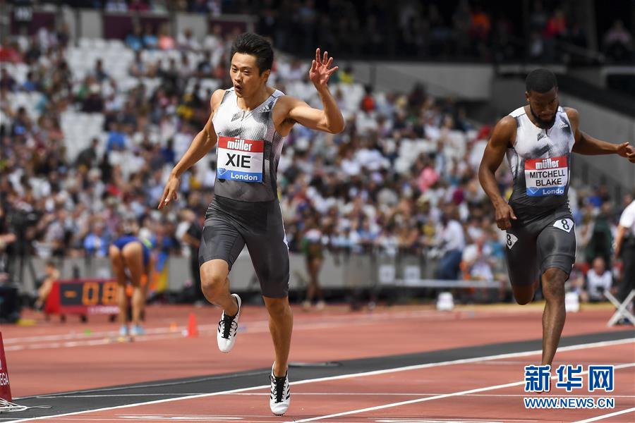 7月21日,谢震业(左)在比赛中。 当日,在国际田联钻石联赛伦敦站男子200米决赛中,中国选手谢震业以19秒88的成绩夺得冠军,并刷新了这个项目的亚洲纪录。 新华社发(阿尔贝托·佩扎利摄)