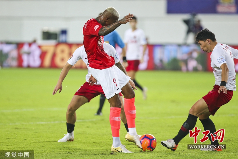 2019年7月24日,广东广州,2019足协杯1/4决赛,广州恒大淘宝Vs上海上港。图为塔利斯卡射门。