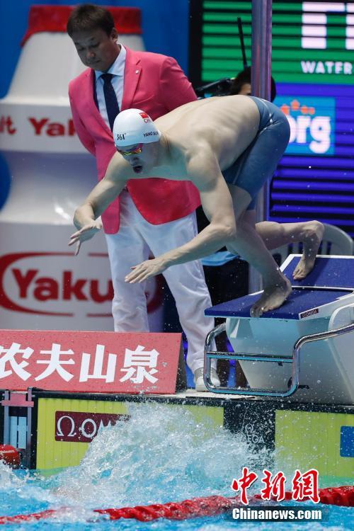 7月26日,孙杨在比赛中出发。当日,在韩国光州举行的2019国际泳联世界游泳锦标赛男子4X200米自由泳接力决赛中,中国队以7分04秒74的成绩夺得第六名。中新社记者 韩海丹 摄