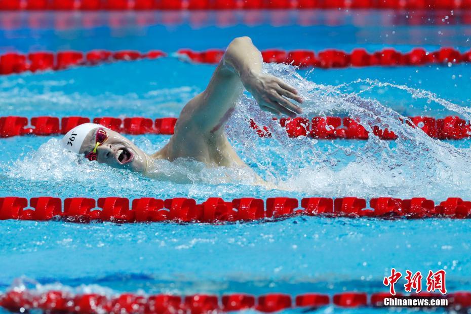 7月26日,孙杨在比赛中。当日,在韩国光州举行的2019国际泳联世界游泳锦标赛男子4X200米自由泳接力决赛中,中国队以7分04秒74的成绩夺得第六名。中新社记者 韩海丹 摄